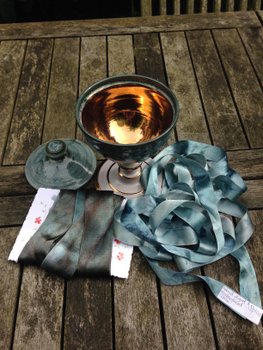 My youngest sister just got engaged and in the absence of parents we siblings wanted to mark the occasion. The proposal took place at a significant waterfall so we chose this fabulous chalice by Suffolk potter Christopher Soule, and asked local artist