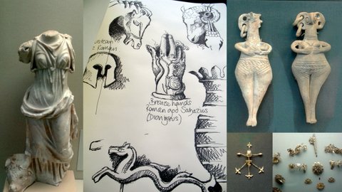 What a wonderful place this is. My neice showed me her own sketches of the very strange bird ladies (thanks Mia!) so I was delighted to stumble across them. I love the whimsy of the gold cat among the birds and the curious hand of Sabazius. I could happily spend days there drawing but its usually a couple of uneasy hours scratching out the odd sketch while chaperoning the children and their friends and racing back to check that they haven't been lost or stolen.