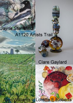 I'm part of the A1120 Artist Trail, a downloadable map is available from the Suffolk Open Studios website. Serendipitously, the artist who created the map: Lorrette E Roberts also lived and worked in Asia and her work was familiar to me from our time in Singapore. What are the odds on us ending up in rural Suffolk in adjacent villages?