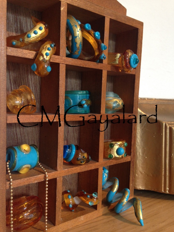 Some Roman Tomb test pieces I made on a gold leaf kick a couple of months ago. They haven't worked their way into a full story but they will, if you flamework you will see they haven't been cleaned properly yet, but just look at the colours.