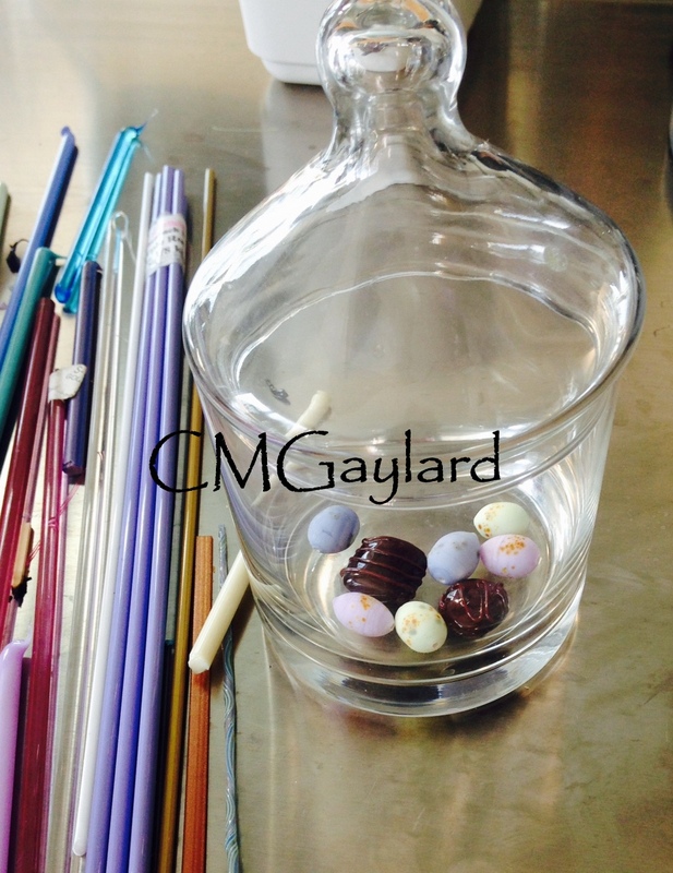 Pulling stringers, making handmade cane and my own millefiori, then demonstrating how I incorporate them int a focal bead.