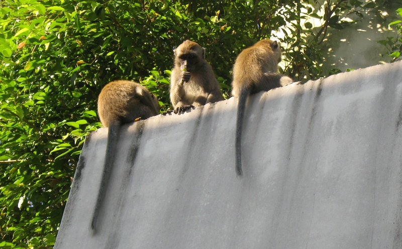 My current studio view is mostly wall, some bamboo and a small patch of sky. Things get more interesting when monkeys arrive from the nearby nature reserve. They are incorrigable and aggressive thieves so there is always a flurry of shouting and and a domino effect of windows being slammed shut along the long line of houses.