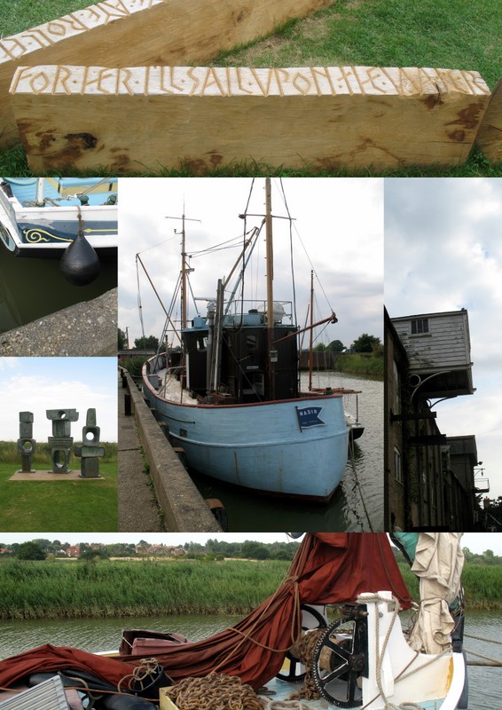 Art, music, marshes and water. A boat dressed like a film set and a sculpture to accomodate numerous climbing children for yearly photos. Plus holes to see the world through.