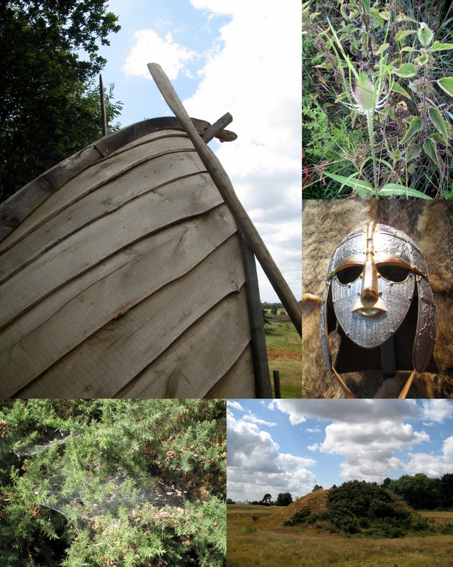 Sutton Hoo is an ancient Anglo Saxon burial ground. The mounds were excavated in the early part of the 20th C. Headline: 'Pirate Treasures Goes To A Woman' and why not.Complex craftsmanship in the ornament and armour and a fine mock helmet for the kids to handle and wear. Quotes from Beowulf & original sources, my favourite from a hard people: 'We feast on beauty as we feast on food, but for beauty this would be a woeful world.'