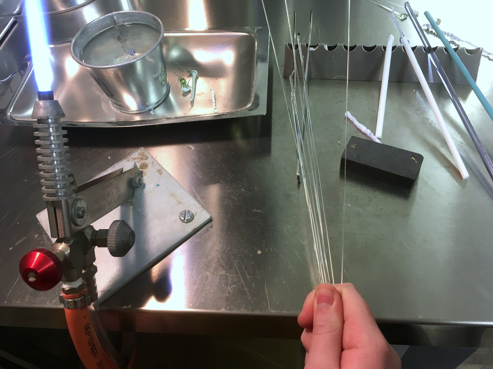 These are hot days to sit at a torch, next to a kiln..... we are calling it suffering for art. Some lovely long stringers from a confident hand in a starter class.