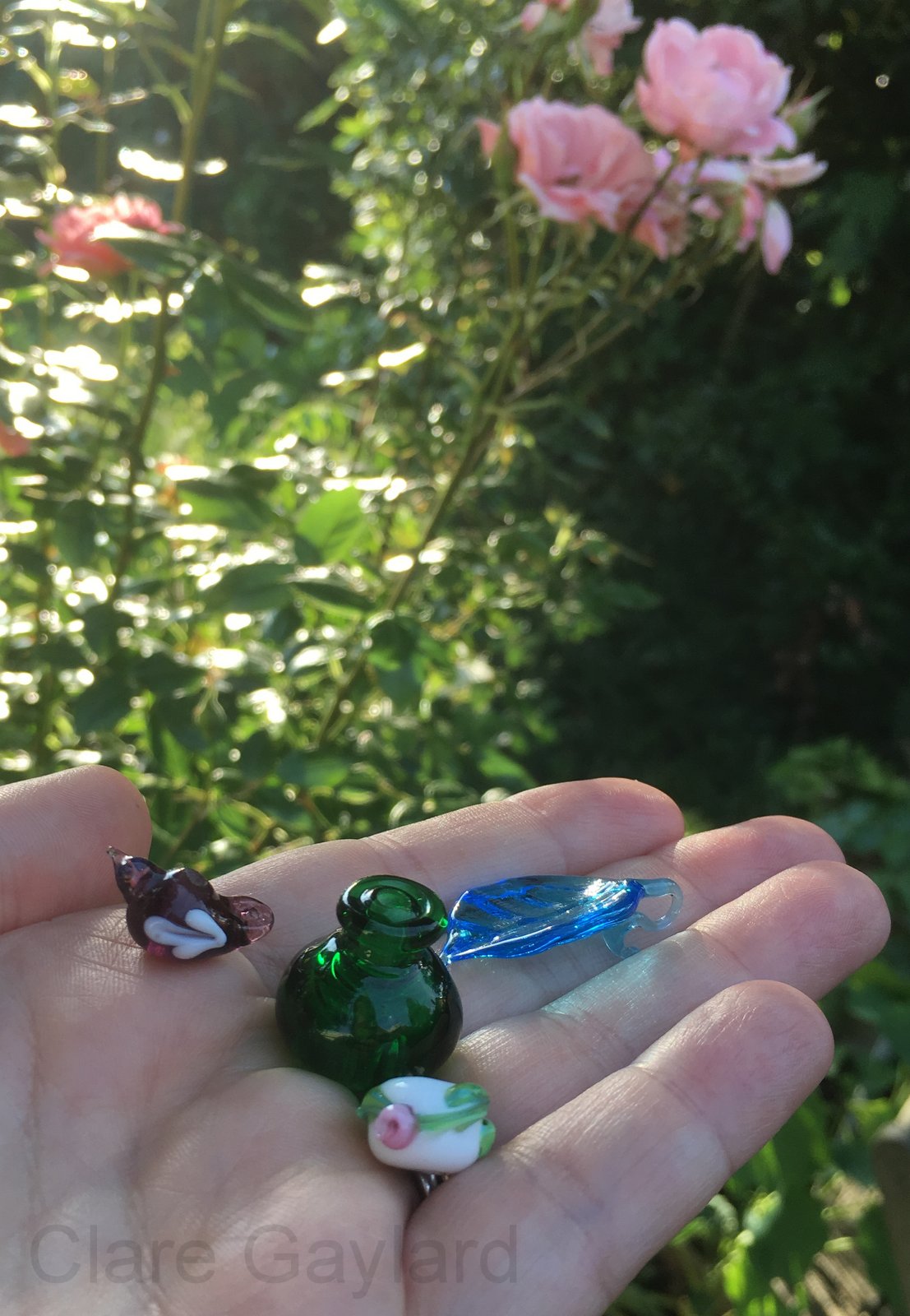 I've taught two starter workshops in the last Open Studio week (amongst other things) and enjoyed them very much. I have a strong preference for teaching flamework one-to-one because it requires so much focus. I also really enjoy how different characters and approaches yield such personal work from the outset. Thanks to Gayle for this photo of...