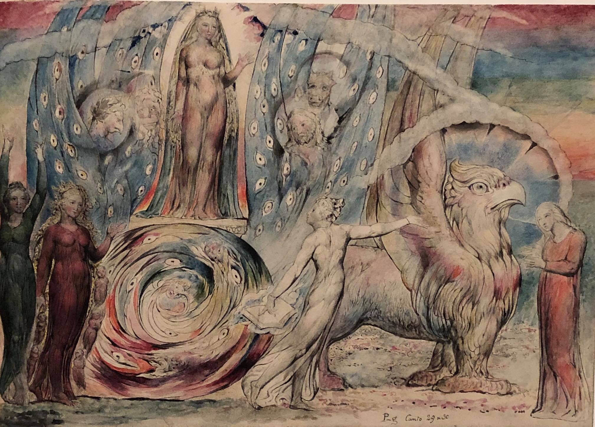 Strange and wonderful, I have loved his illunimated books and poetry for a long time but never really connected with the paintings - well this comprehensive exhibition made me. I'm still baffled by the decision to paint all the vast gallery walls with claustrophobic, dark colours like indigo and oxblood which drew the walls in a crowded gallery right in and fought with the delicay of Blake's work.