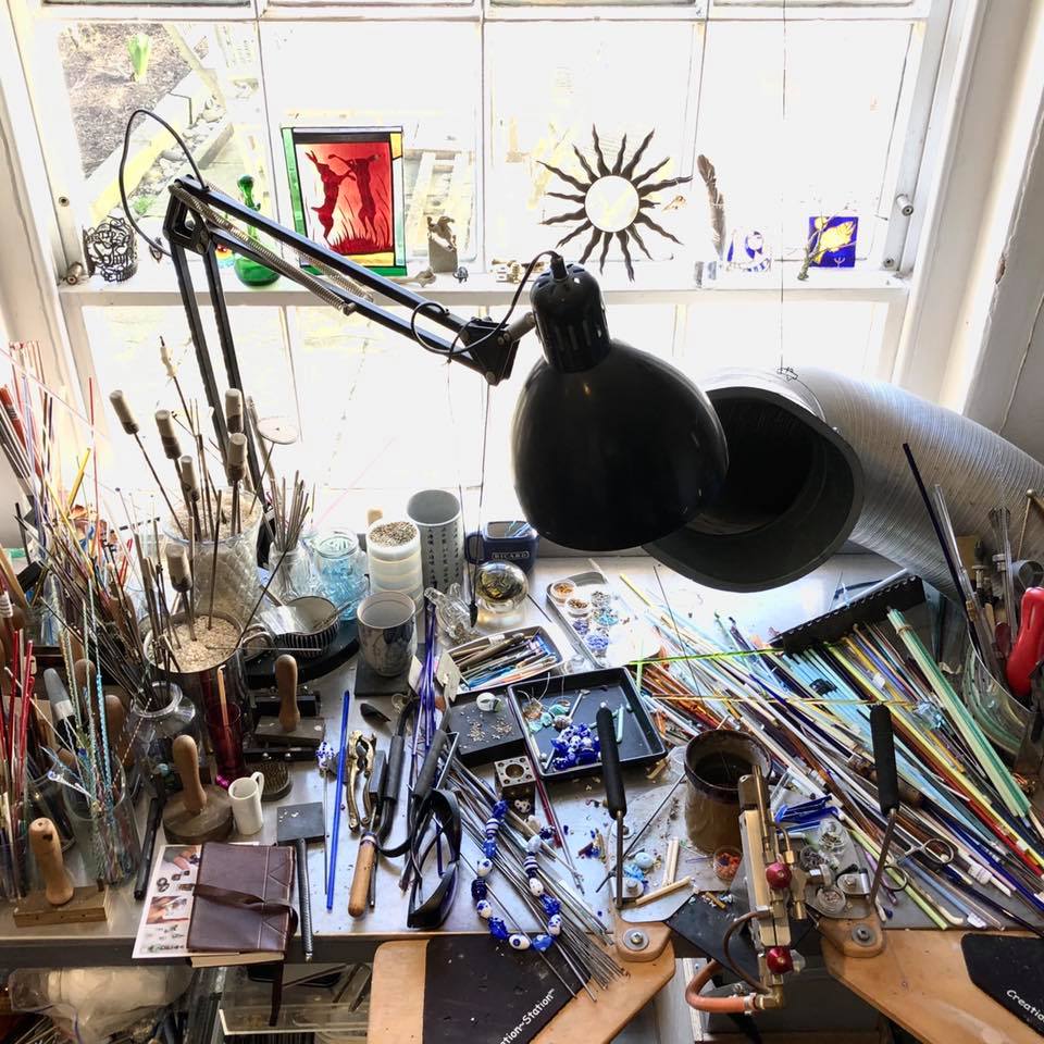 I was about to clear the decks on my home workbench after a solid weeks' work and thought I might as well do a candid photo first. It gets much messier than this but I have to change my colour pathway - plus when it gets to this stage I loose small things and risk burning myself. Which I can put up with for quite a while.