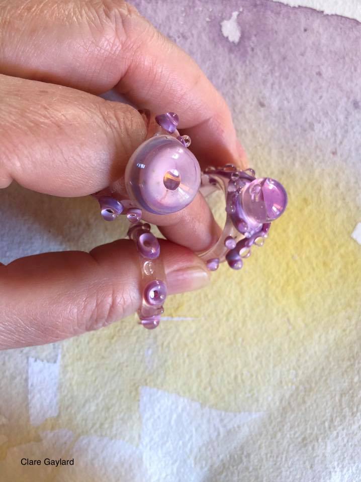 I got out some (usually avoided) pink glass to make something for Valentines day - as I have recently had scant time at the torch and it seemed a good excuse. What rose to the surface was a set of three rings - Octopus, Tentacle and Eye, if that's not romantic I don't know what is.