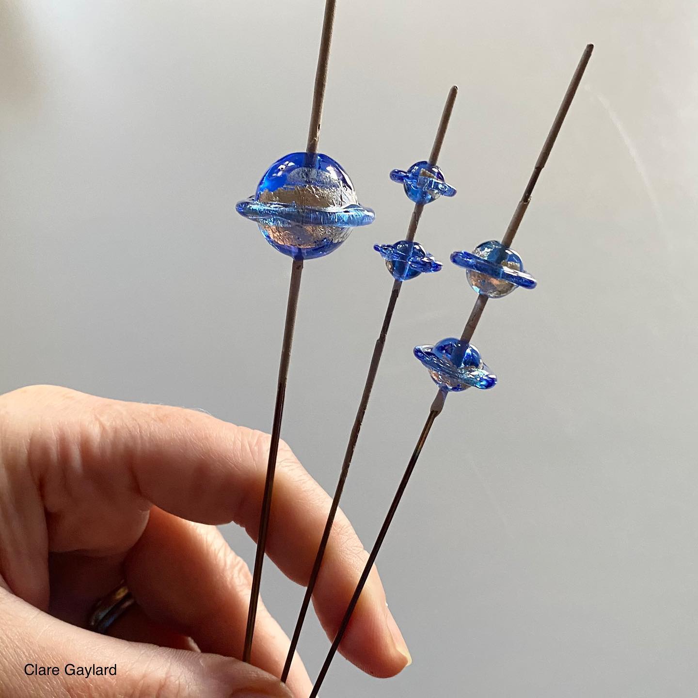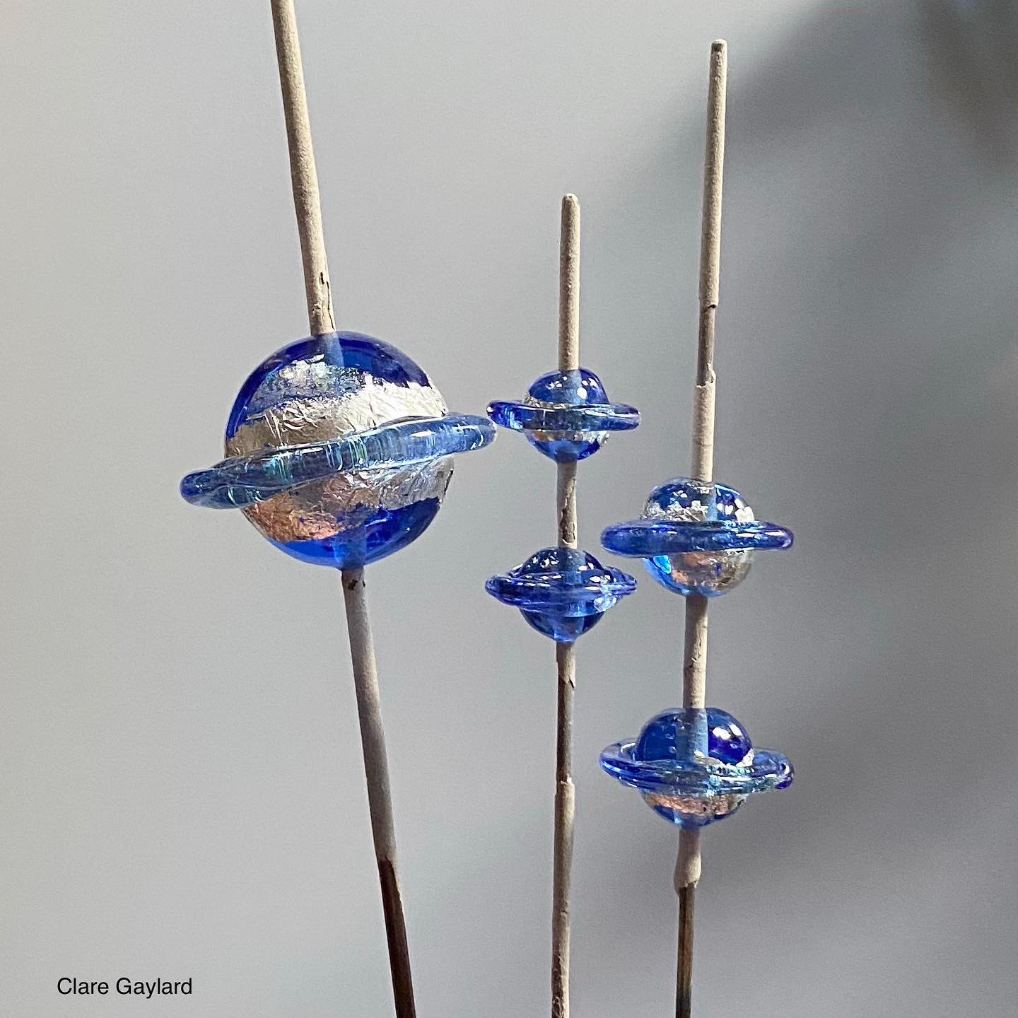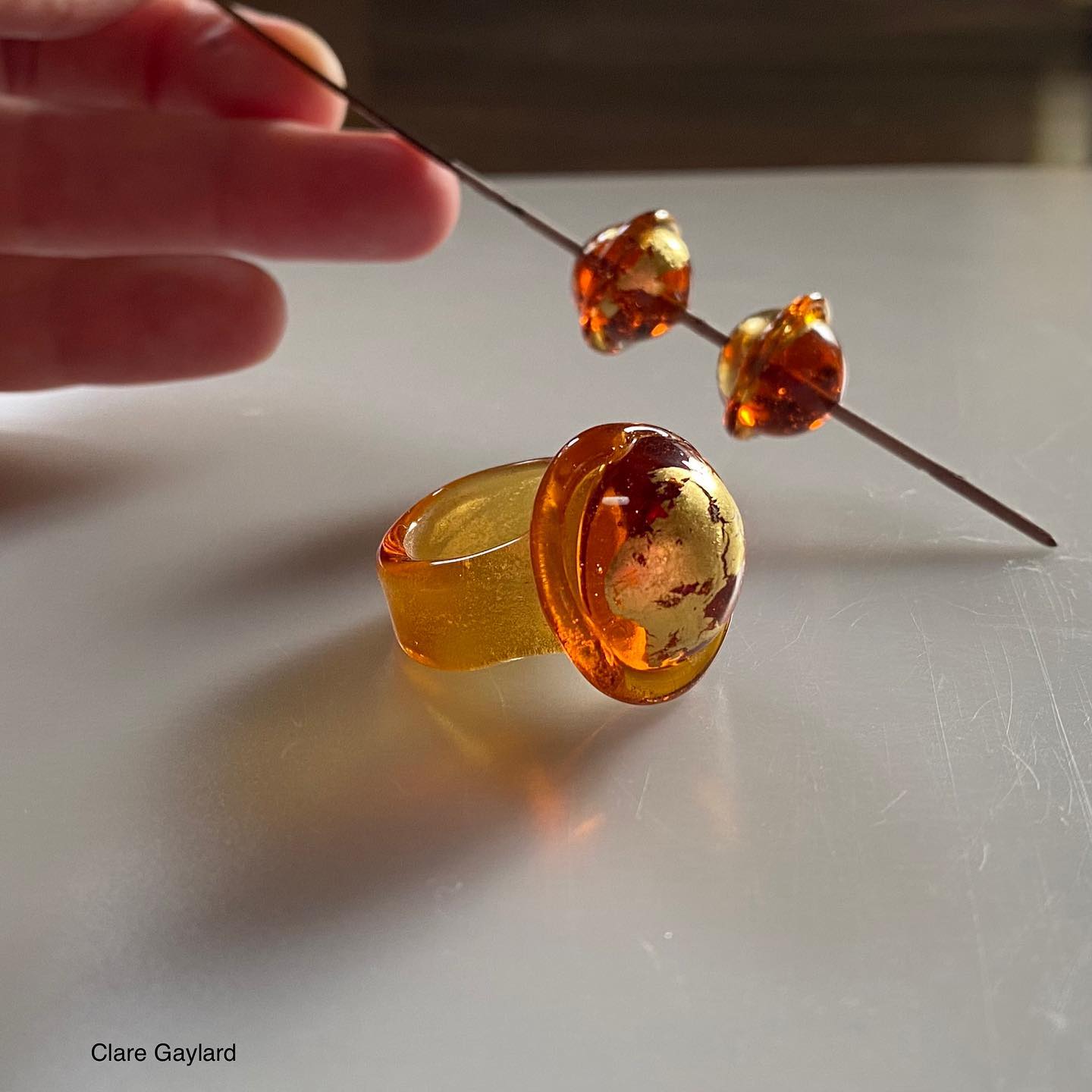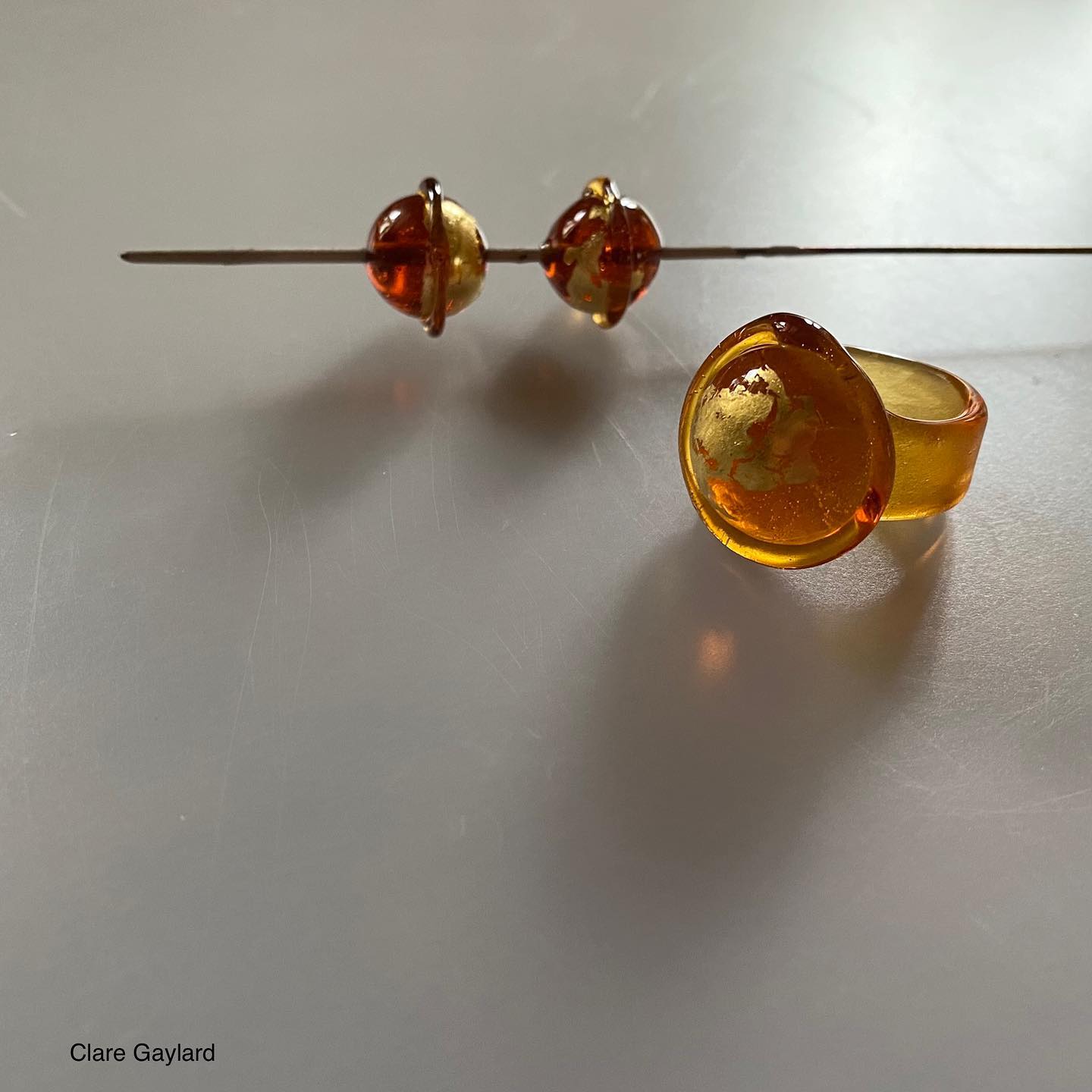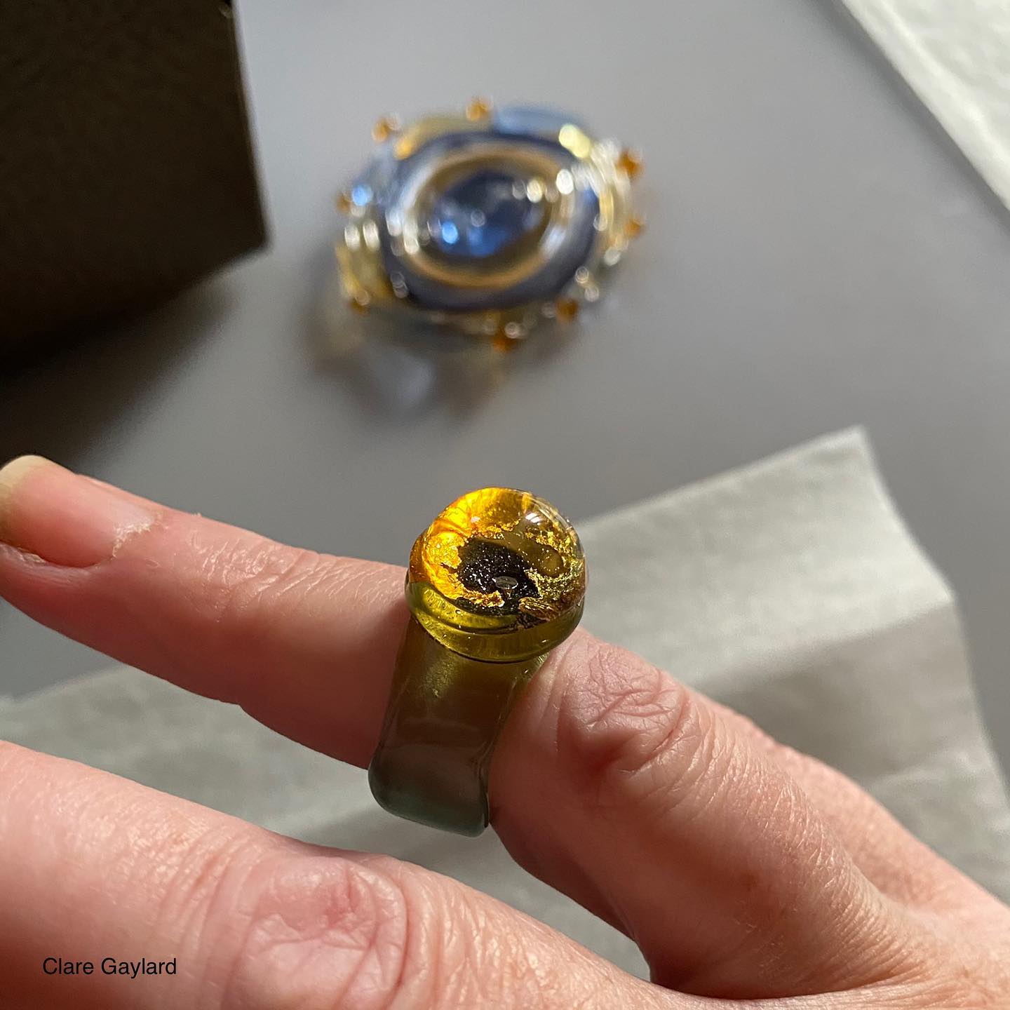 More in the way of glass planetary alignment, I’m going with amber & gold as a contrast to silver & blue. A Planet ring and an earring pair with some bonus orrery goodness from a trip to the Louvre a while back. I shall have some of these available for our Open Studios this coming Saturday (December 5th) alongside @botanicalbeing
