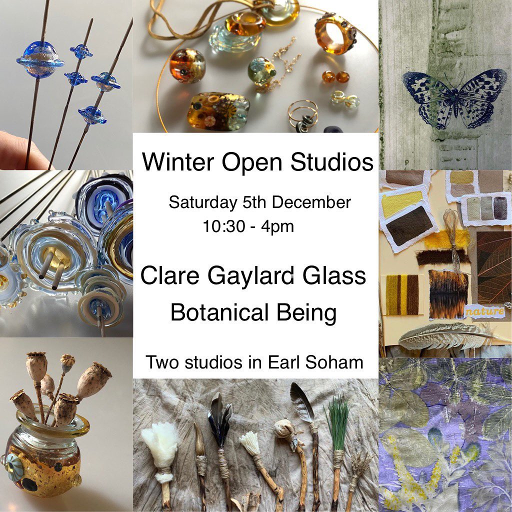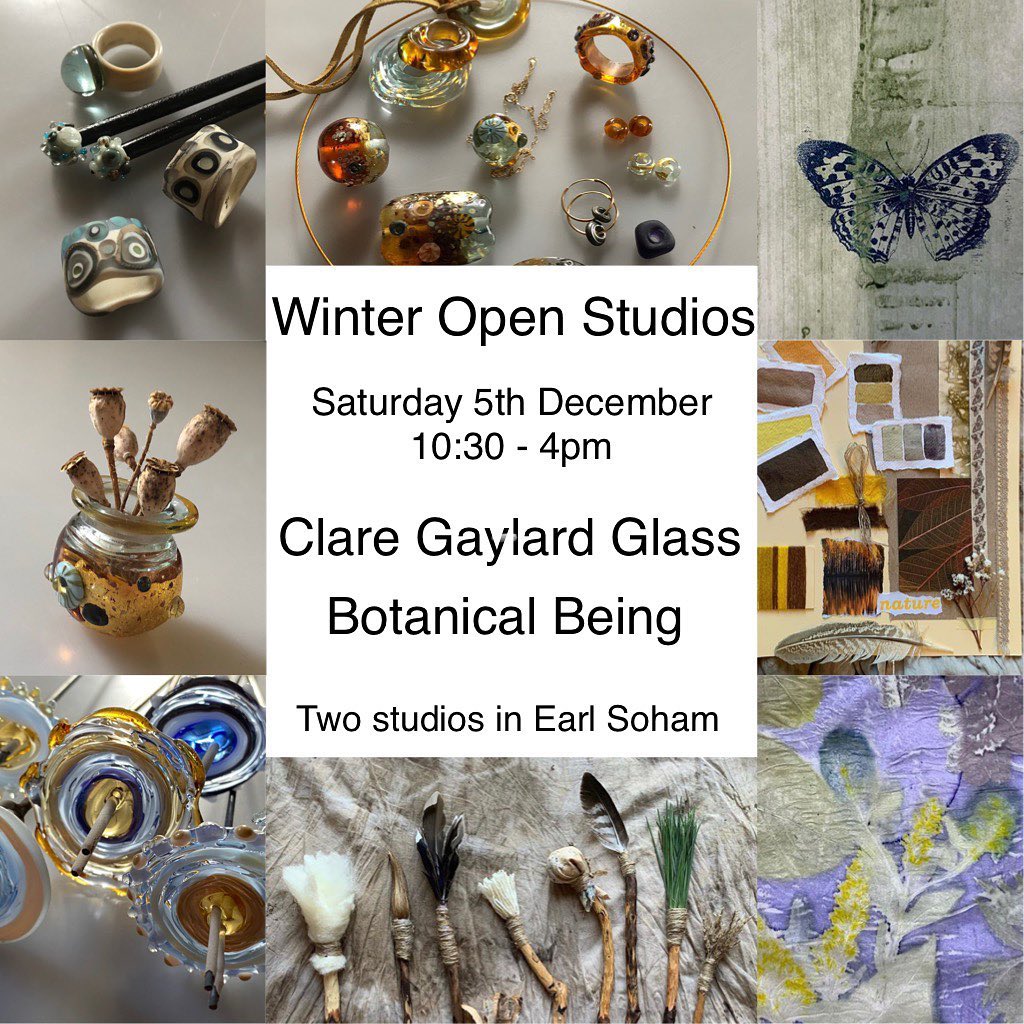 Our studios open tomorrow! You will find Botanical Being and myself in our Earl Soham studios at our work. Winter inspiration and beautiful unique and artisan/artist made creations in textiles, print and glass. My studio will only take two people at a time so if you would like to make an appointment to avoid waiting, please get in touch. This is not necessary for Maria’s studio, which consists of a series of larger spaces. My studio is to the left of Yew Tree Court and parallel with the A1120.