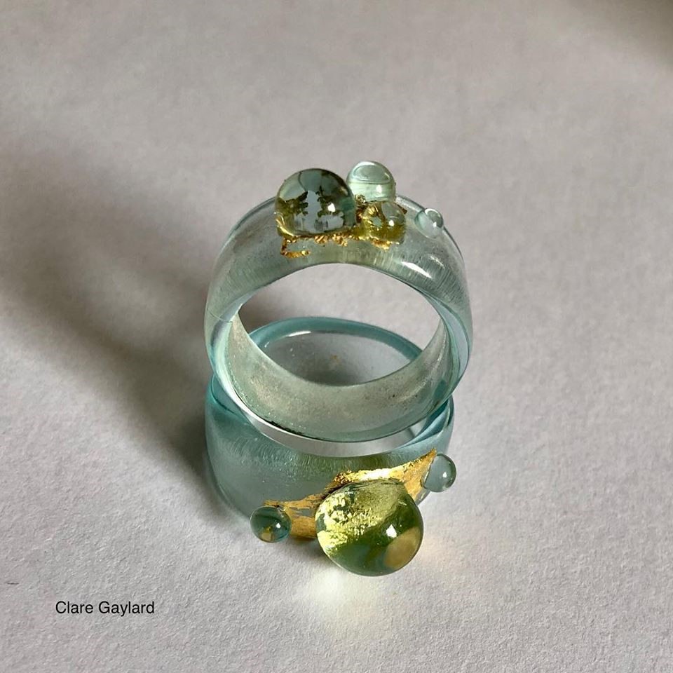 Two gold-on-glass rings that are part of a delivery to The Sentinel Gallery in Wivenhoe, in time for their upcoming exhibition; Personal Perspectives. The exhibition runs from September 22nd - October 7th 2018.