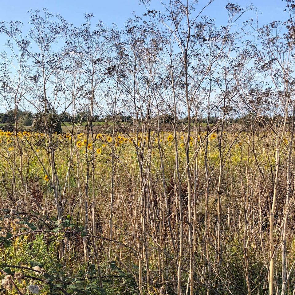 I appear to have missed AN ENTIRE FIELD OF SUNFLOWERS blooming behind my studio. I got the last one standing and a blue sky today though.