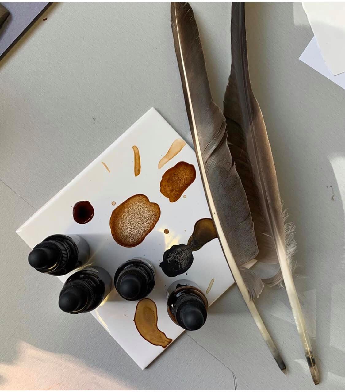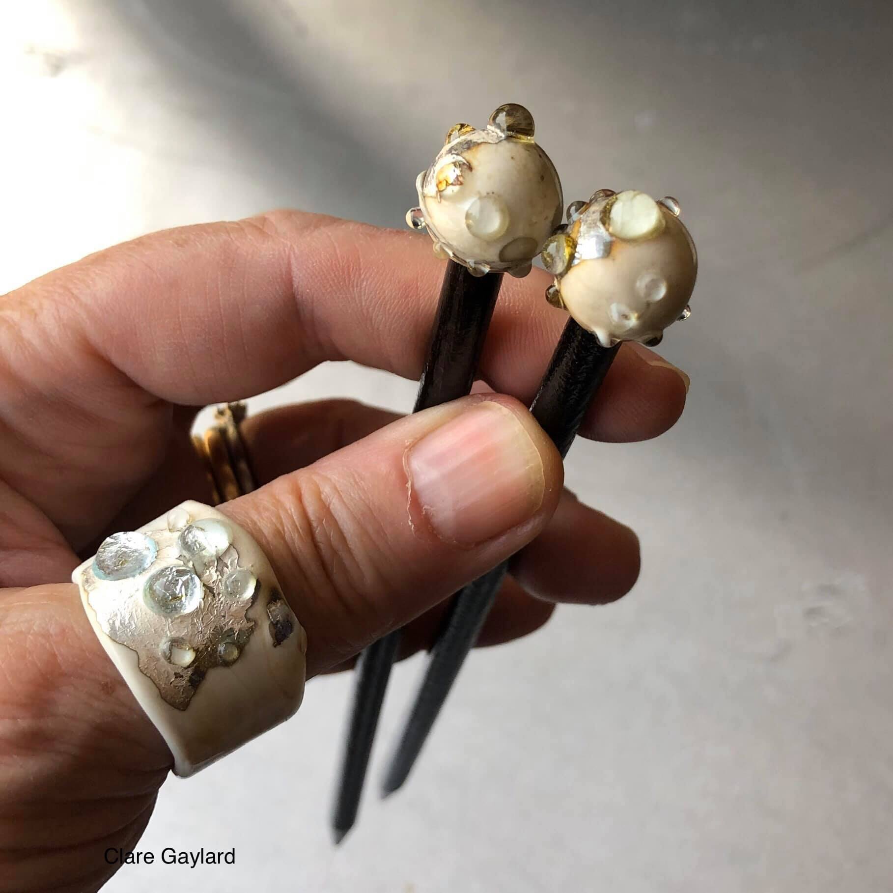 Glass Caddisfly ring and hairsticks with ornate finials from me and deep-hued walnut and acorn inks made by @botanicalbeing, save the date for our Open Studios this coming weekend. 3rd & 4th October 10.30 - 4pm. Enjoy some inspiration and creative vision, get a glimpse behind the scenes. Visits to my studio limited to two persons (so make an appointment to avoid waiting) Covid measures in place.