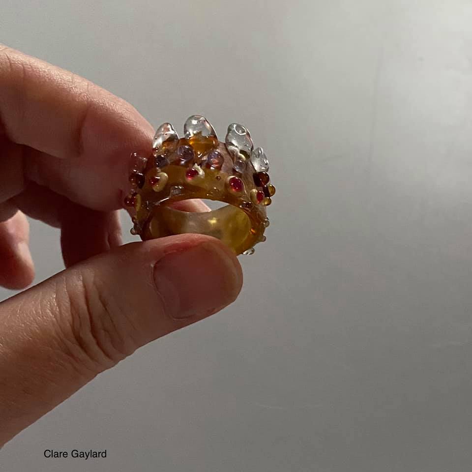 Playing with another winter sunset. Sundowner cocktail ring, sculpted in molten glass.