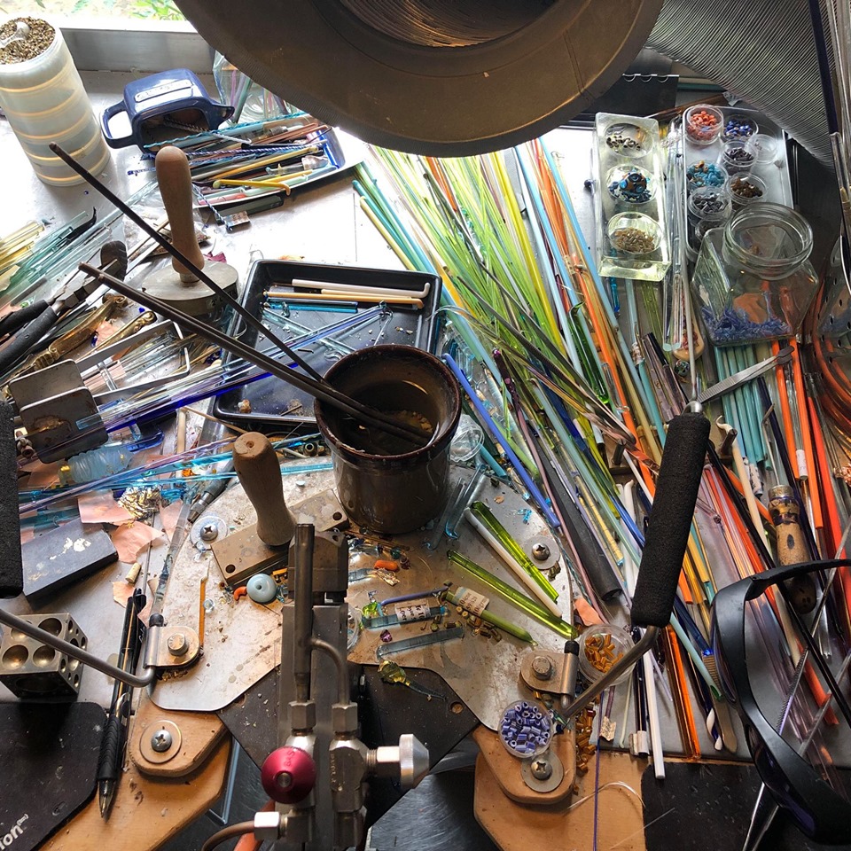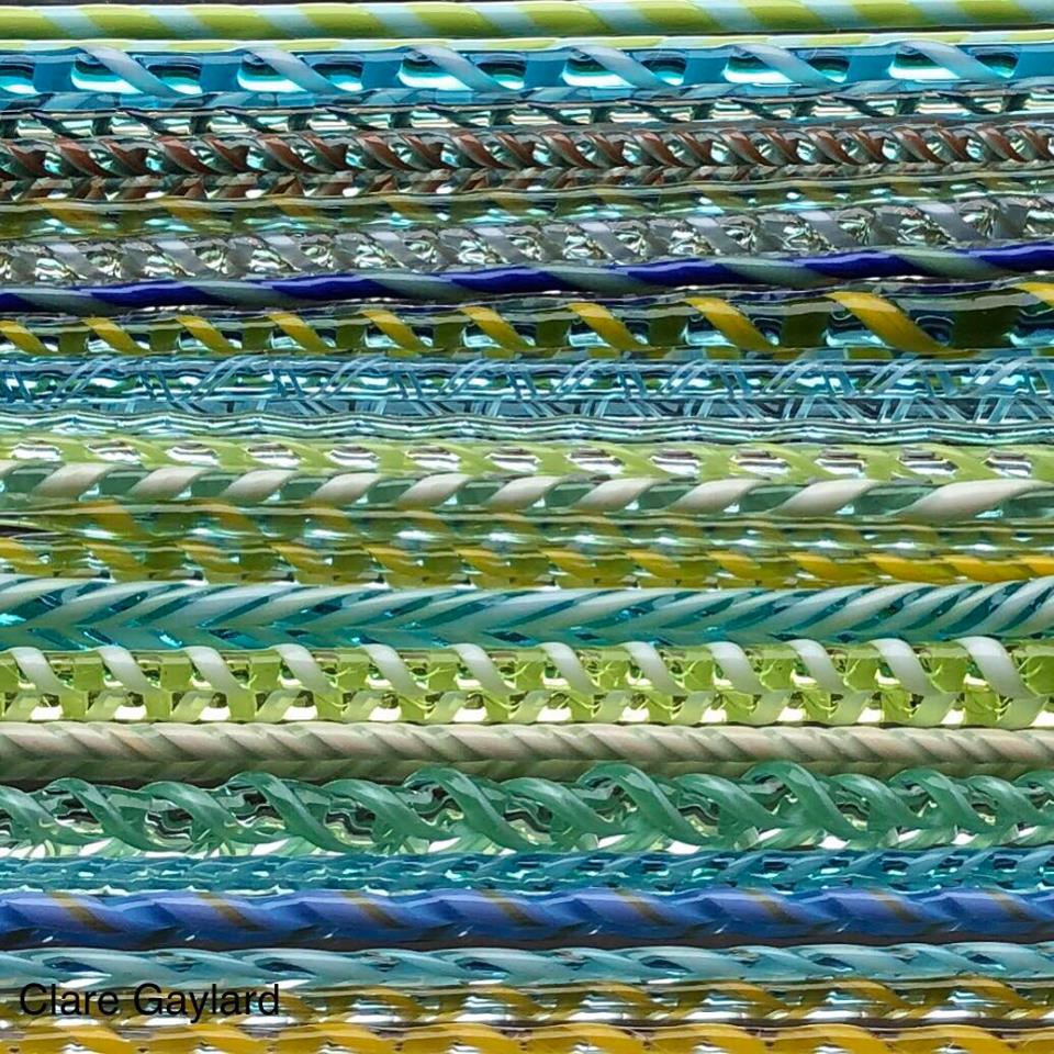 A few weekends of demonstrating how to make twisted glass cane leaves me with a workbench littered with latticino. Its such a swift, alchemical moment and the results are extremely satisfying. Last SOS weekend coming up!