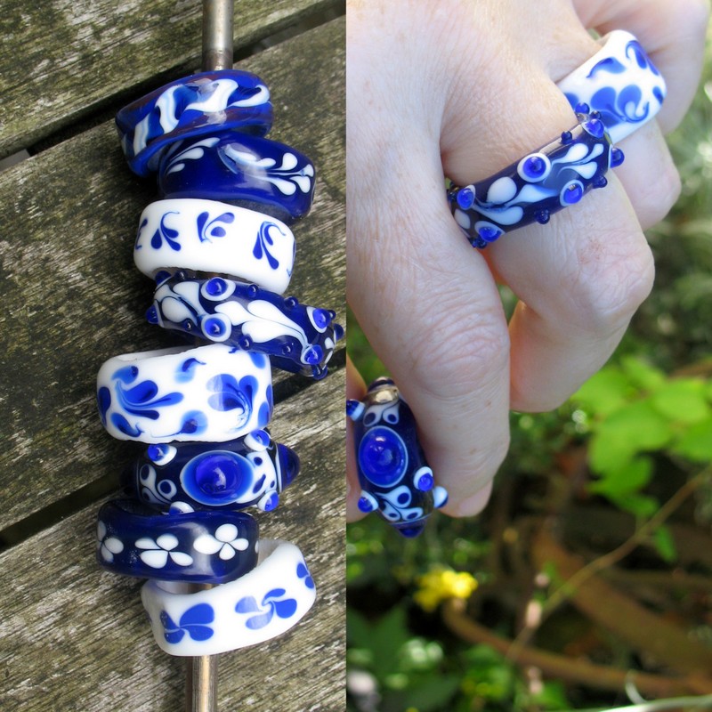 Fairly uninhibited doodling, ideas for a Blue&White lampwork ring commission.