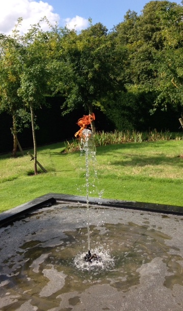 We saw the James Turrell exhibition at Houghton House on the weekend. The main illumination didn't start until dusk, despite a blue moon and a summer evening it was cold so we just watched (rather than recorded) the tranquil play of light and colour. So I offer a fountain of water and fire from the walled garden by Jeppe Hein. Noisy, pungent and strangely enjoyable.