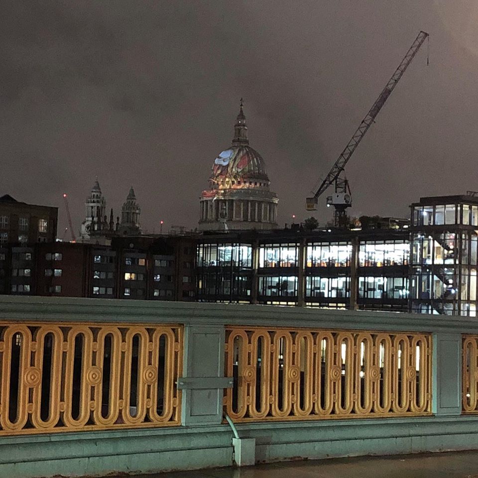 Driving across Southwark Bridge in the London rushour I noticed that the dome of St Pauls Catherdral was illuminated with an unusual image but couldn't tell what it was - a birthday nod to William Blake who always cherished a wish to see his art work on a grand scale in churches. You can see this until early December and he is still at the Tate into early 2020.